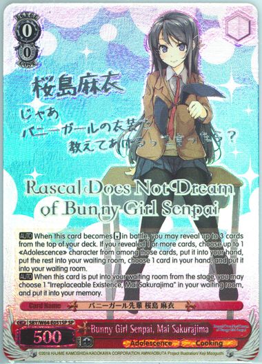 Auction Prices Realized Tcg Cards 2019 WEISS SCHWARZ RASCAL DOES NOT DREAM OF BUNNY GIRL SENPAI Bunny Girl Senpai, Mai Sakurajima