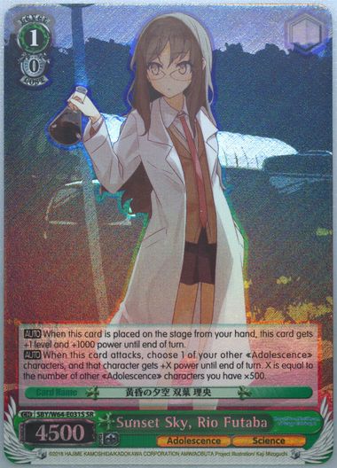 Auction Prices Realized Tcg Cards 2019 WEISS SCHWARZ RASCAL DOES NOT DREAM OF BUNNY GIRL SENPAI Sunset Sky, Rio Futaba