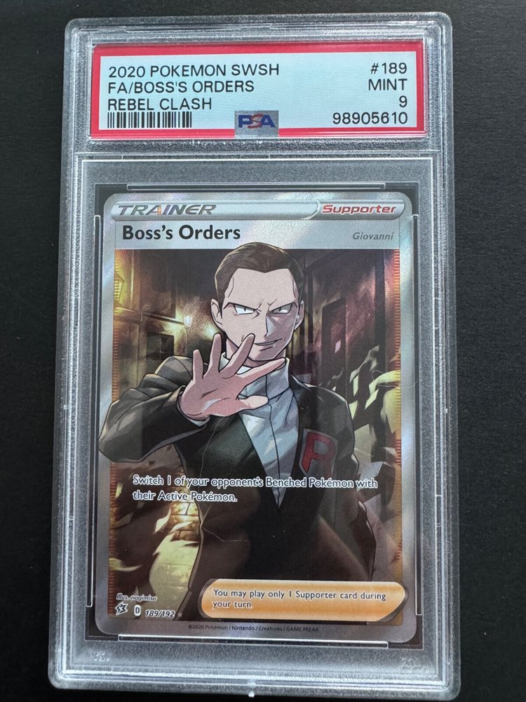 2020 POKEMON SWSH FA/ BOSS'S ORDERS REBEL CLASH # 189 MINT PSA 9 FULL ART HOLO