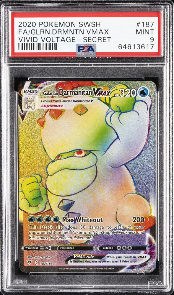 2020 POKEMON SWSH SECRET #187 FULL ART/GALARIAN DARMANITAN VMAX PSA 9