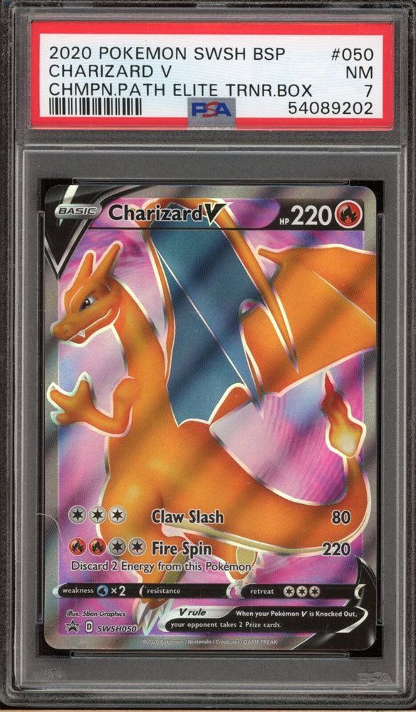Pokemon Charizard V Champion's Path ETB Full Art Promo SWSH050 PSA 7