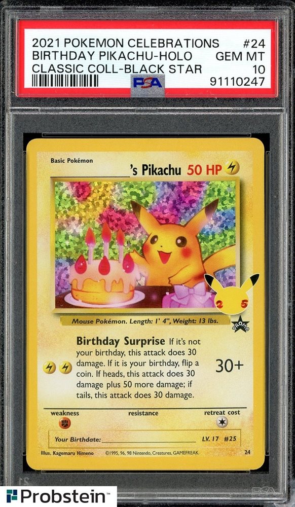 2021 POKEMON CELEBRATIONS CLASSIC COLL #24 BIRTHDAY PIKACHU-HOLO PSA 10 FIRE