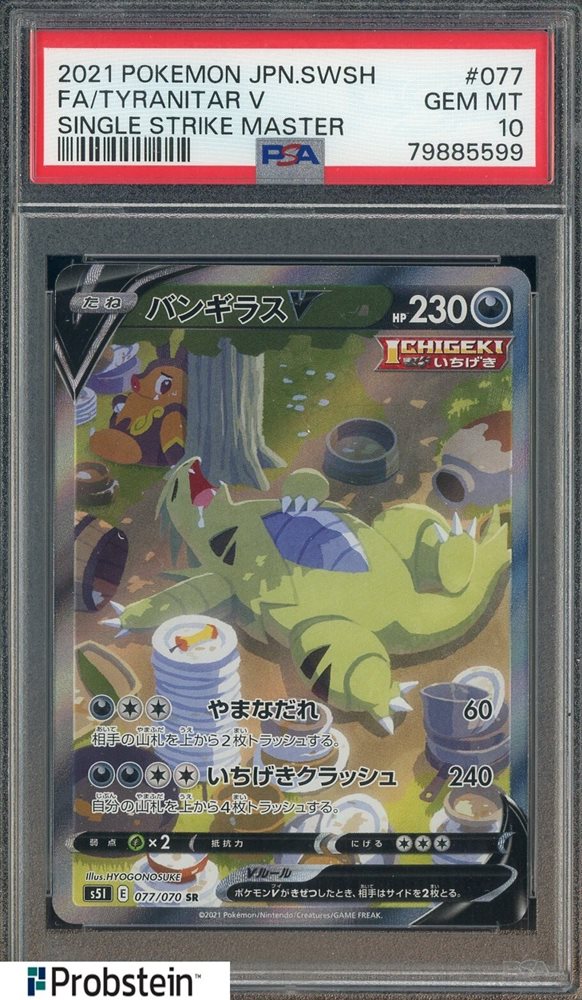 2021 Pokemon SWSH Single Strike Master #077 Tyranitar V FA PSA 10 GEM MINT