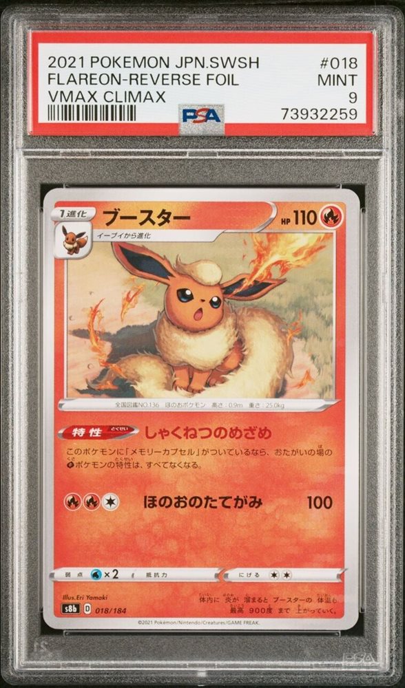 PSA 9 GM MT Flareon Reverse Holo Japanese Vmax Climax Pokemon Card 018/184