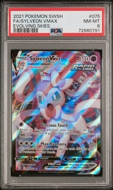 2021 Pokemon SWSH SYLVEON VMAX Evolving Skies Full Art #075 NM-MT PSA 8