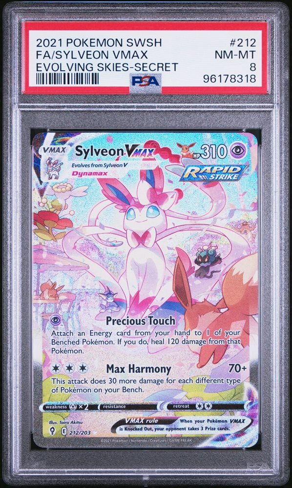 2021 POKEMON SWORD & SHIELD EVOLVING SKIES SECRET FULL ART/SYLVEON VMAX PSA 8