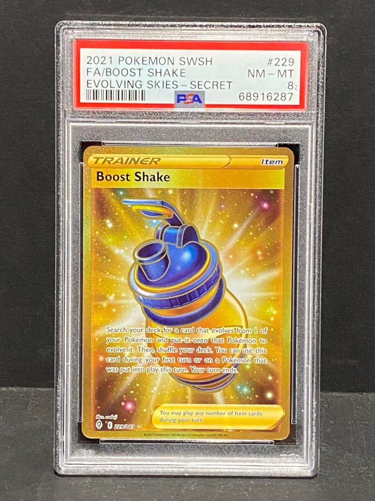 Pokémon 2021 Evolving Skies Full Art Boost Shake #229 Gold Secret PSA 8