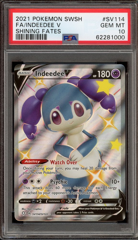 Pokemon Indeedee V Shining Fates Full Art #SV114 PSA 10 Gem Mint
