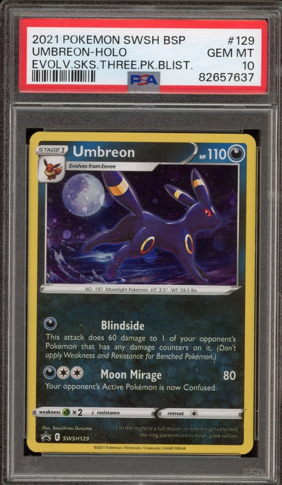 Pokemon Umbreon Evolving Skies 3 Pk. Blister Holo Promo SWSH129 PSA 10 Gem Mint