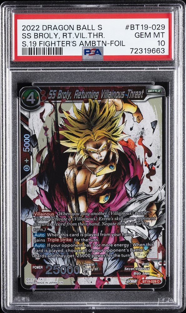 Auction Prices Realized Tcg Cards 2022 DRAGON BALL SUPER CARD GAME SERIES 19 FIGHTER'S AMBITION Ss Broly, Returning Villainous Threat