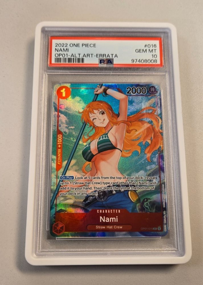 ONE PIECE CARD GAME Romance Dawn OP01-016 Nami Alt Art English Errata PSA 10