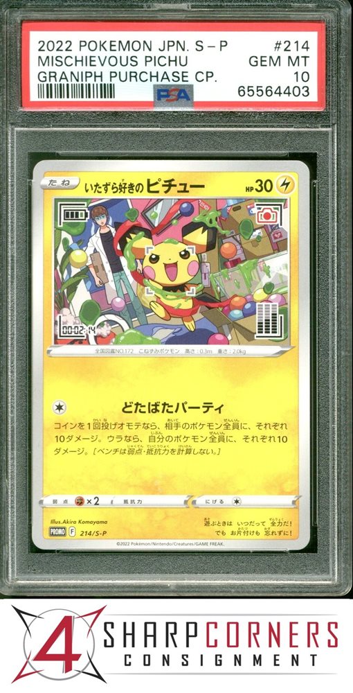 2022 POKEMON JAPANESE S-P PROMO GRANIPH PURCHASE #214 MISCHIEVOUS PICHU PSA 10
