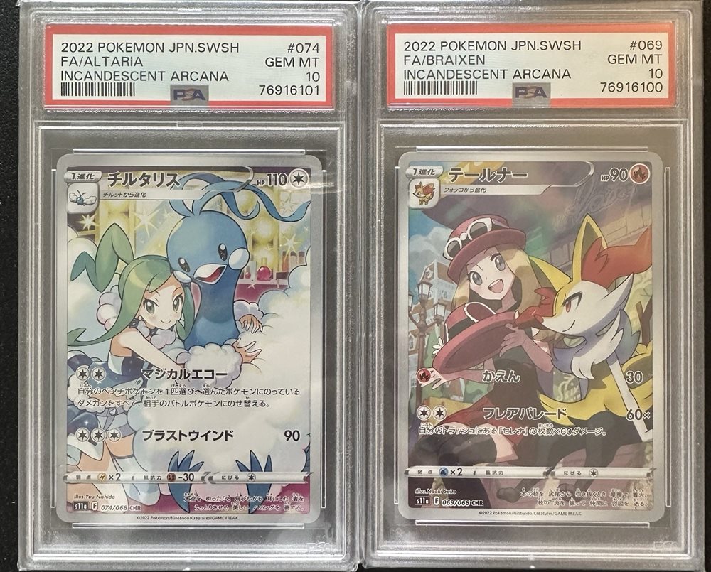 2022 Pokémon Japanese SWSH Incandescent Arcana Altaria&Braixen PSA 10 GEM Pair