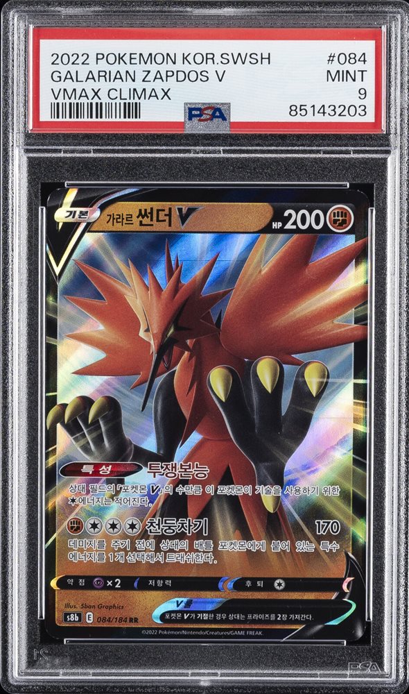 Auction Prices Realized Tcg Cards 2022 POKEMON KOREAN SWORD & SHIELD VMAX CLIMAX Galarian Zapdos V