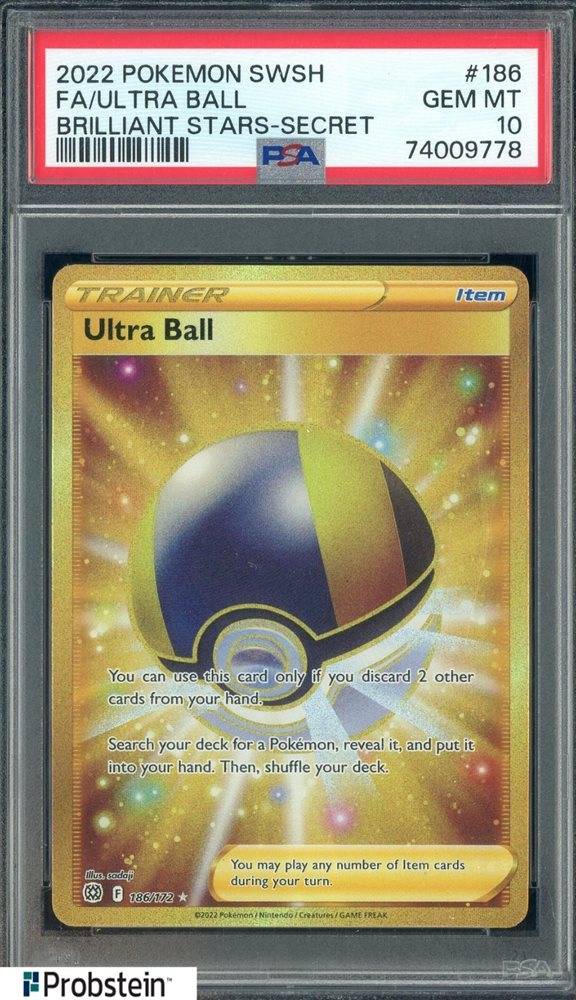 2022 Pokemon SWSH Brilliant Stars Secret #186 Ultra Ball Fa PSA 10 GEM MINT