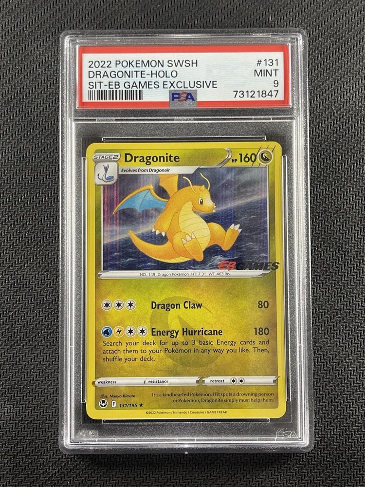 Pokemon Card PSA 9 Mint Dragonite Silver Tempest EbGames 2022 Holo 131/195