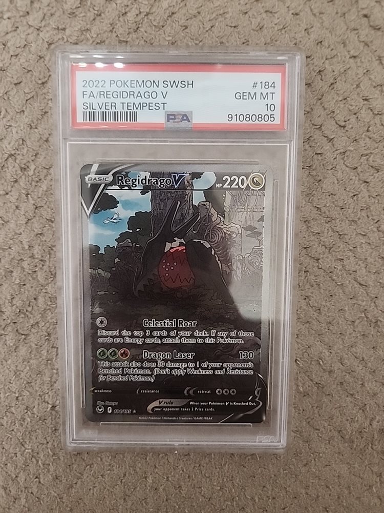 2022 POKEMON SWORD & SHIELD SILVER TEMPEST #184 FULL ART/REGIDRAGO V PSA 10