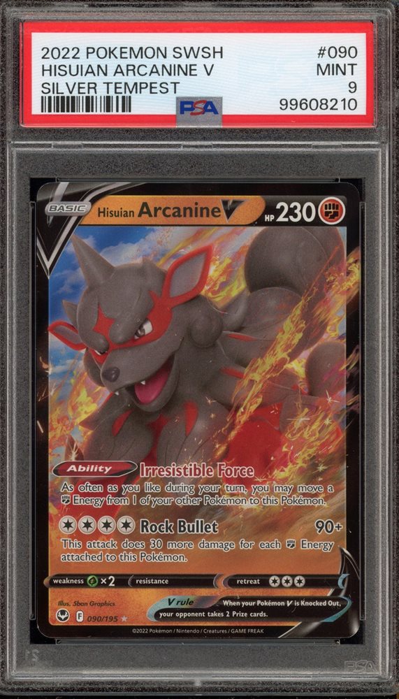 Pokemon Hisuian Arcanine V Silver Tempest Ultra Rare #090 PSA 9 Mint