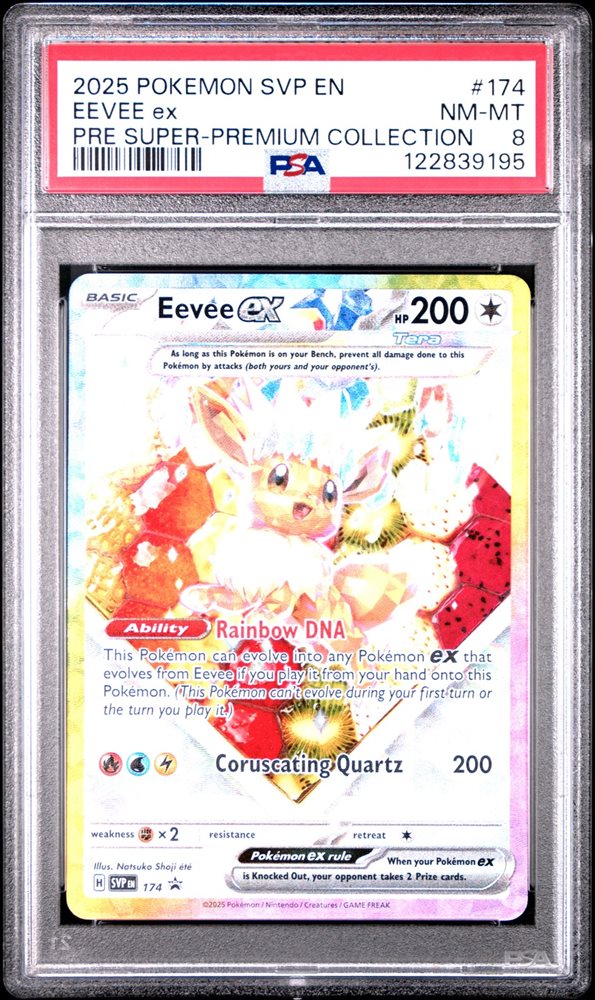 2025 POKEMON PRISMATIC EVOLUTIONS SUPER-PREMIUM COLLECTION PROMO EEVEE EX PSA 8