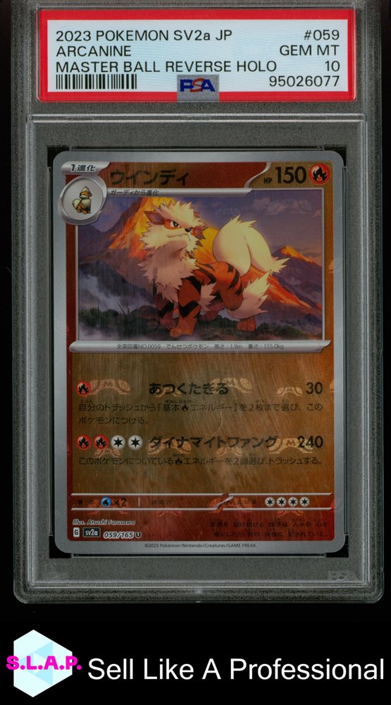 ARCANINE MASTER BALL REVERSE HOLO POKEMON JAP SV2A - POKEMON 151 2023 059 PSA 10