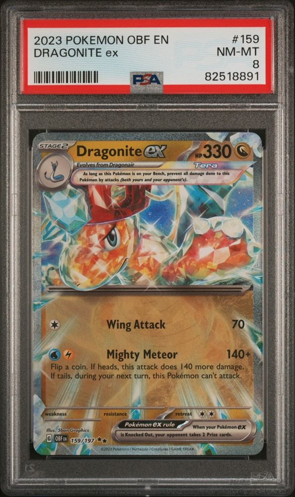 2023 POKEMON OBF EN-OBSIDIAN FLAMES #159 DRAGONITE EX PSA 8