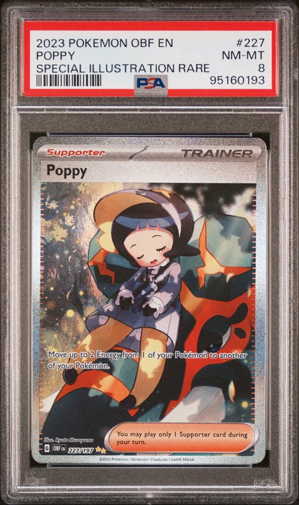 2023 POKEMON PSA 8 POPPY #227 OBSIDIAN FLAMES SPECIAL ILLUSTRATION RARE