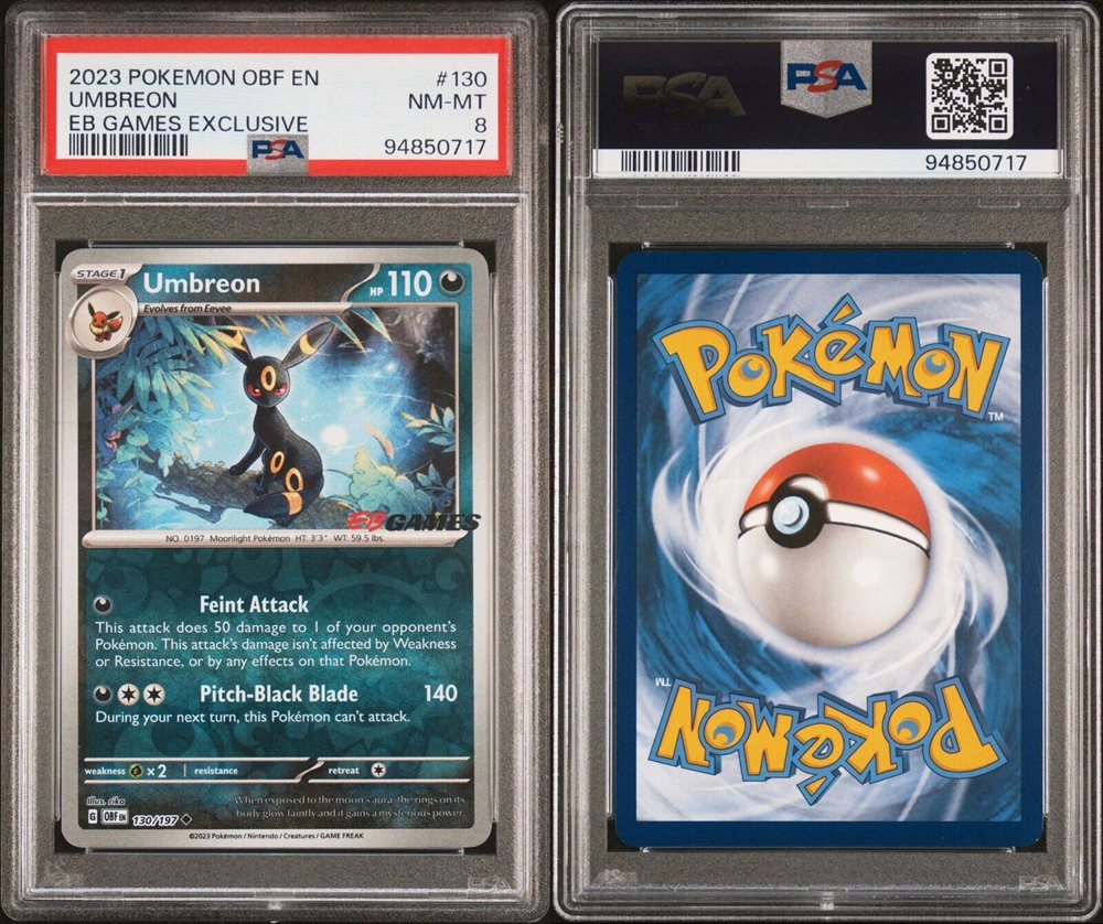 Pokémon TCG Umbreon Sv03: Obsidian Flames 130/197 PSA 8 Nm-Mt