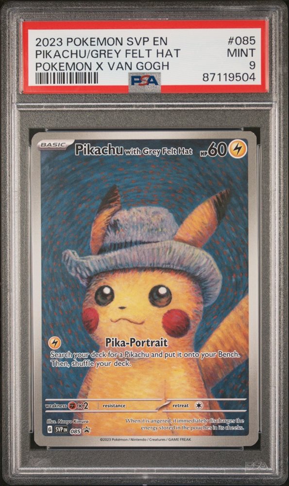 PSA 9 Mint Pokemon Pikachu with Grey Felt Hat Van Gogh Full Art Promo SVP EN 085
