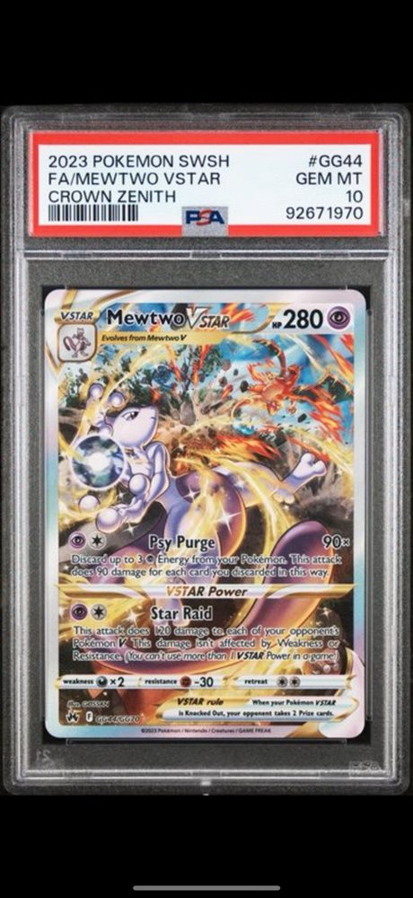 2023 POKEMON SWORD & SHIELD CROWN ZENITH #GG44 FULL ART/MEWTWO VSTAR PSA 10