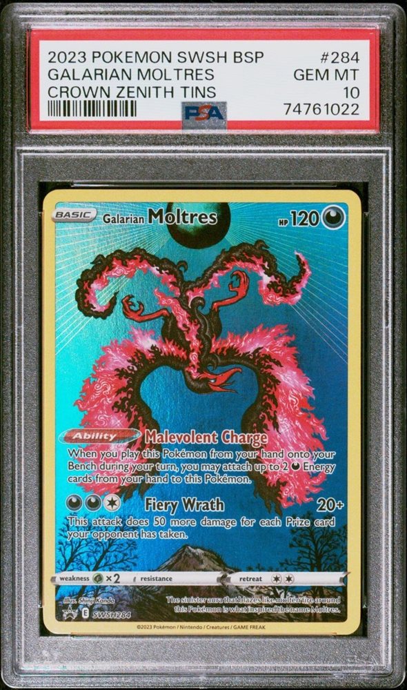 2023 POKEMON SWSH BLACK STAR PROMO 284 GALARIAN MOLTRES CROWN ZENITH TINS PSA 10