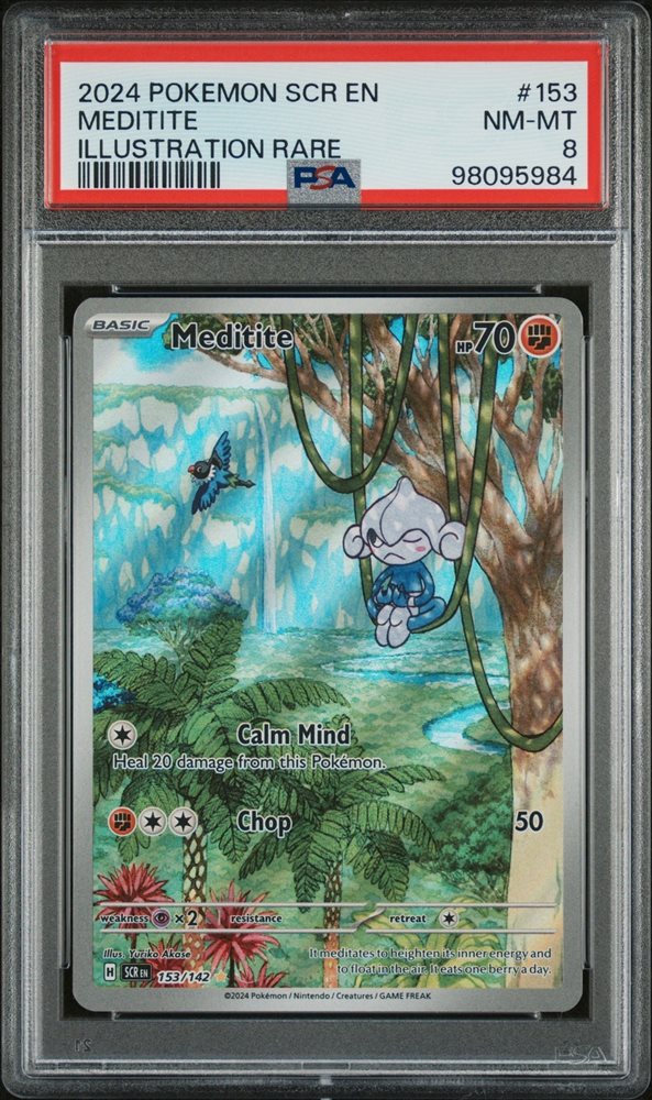 2024 POKEMON SCR EN-STELLAR CROWN ILLUSTRATION RARE #153 MEDITITE PSA 8