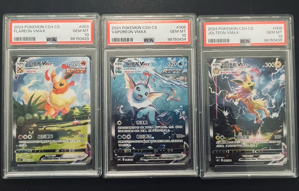 PTCG Pokemon PSA10 in a row Jolteon? Flareon? Vaporeo VMAX CSHC 2024 Chinese