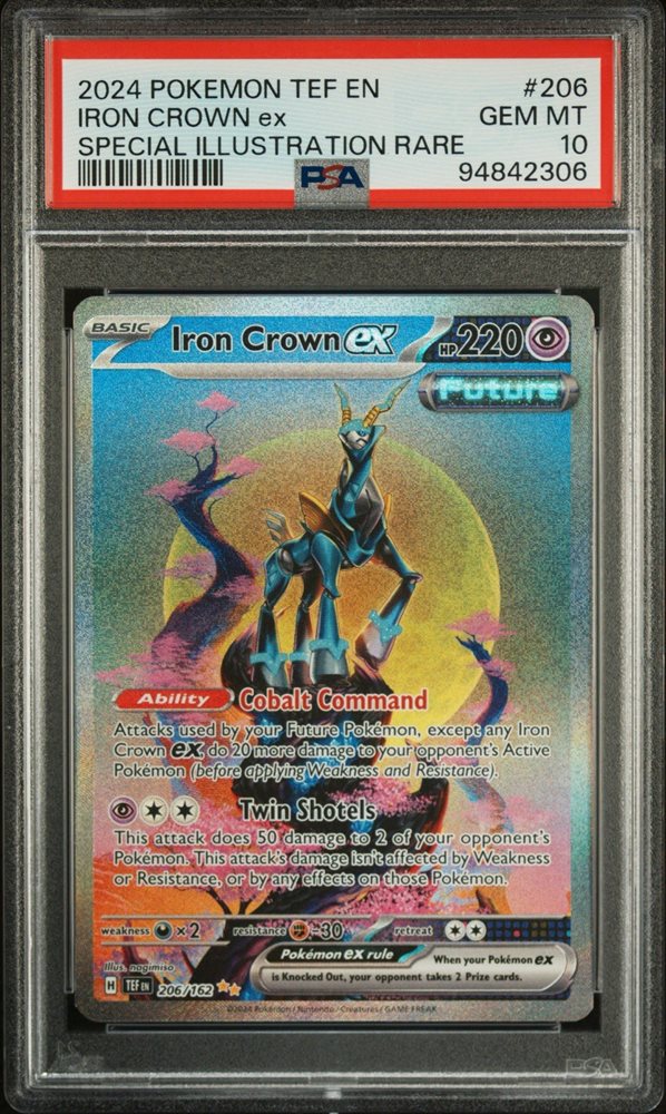 2024 POKEMON TEMPORAL FORCES #206 IRON CROWN EX SPECIAL ILLUSTRATION RARE PSA 10