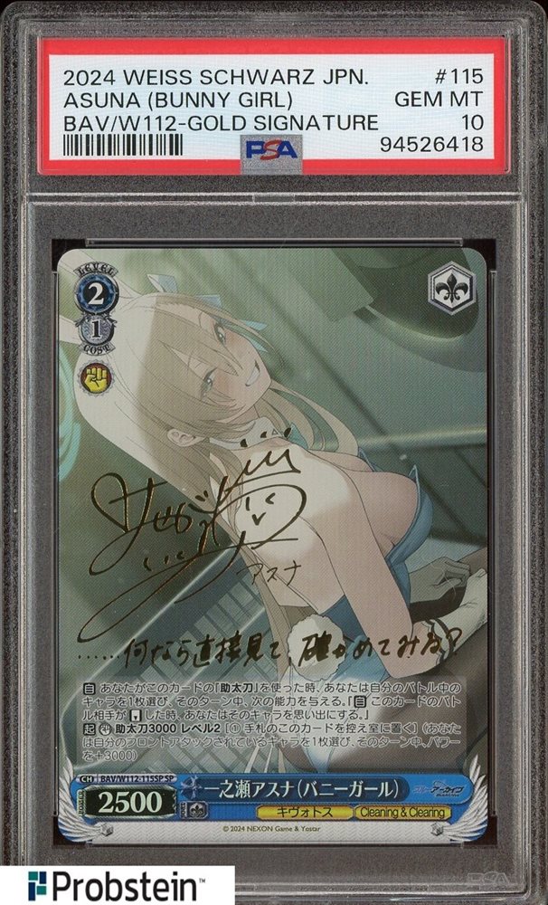 2024 Weiss Schrwarz Gold Signature BAV/W112 Asuna Bunny Girl PSA 10