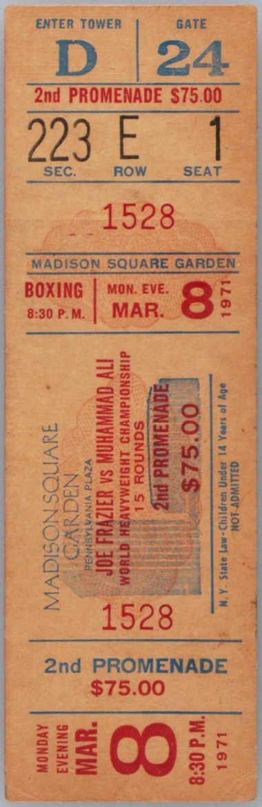 Auction Prices Realized Tickets 1971 BOXING-FULL Frazier Vs. Ali