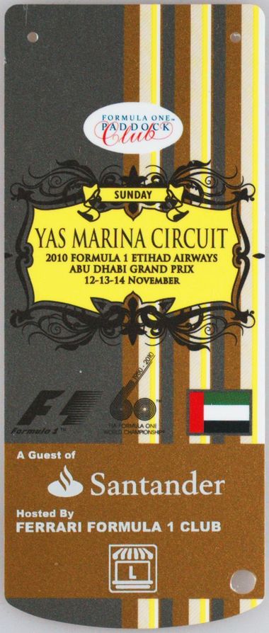 2010 ABU DHABI GRAND PRIX-PASS | SEBASTIAN VETTEL 1ST F1 TITLE/YOUNGEST CHAMPION - PUNCHED