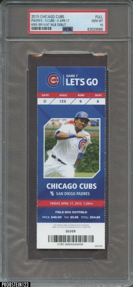 Auction Prices Realized Tickets 2015 CHICAGO CUBS-FULL Padres-5, Cubs-4 Apr. 17